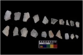 | Description / विवरण | There are n 20 flakes tool; there are multidirectional irregular scar pattern on them, made of short flakes and few have tapering edges. |