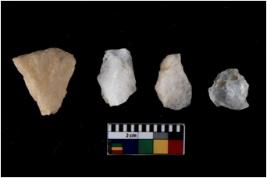 | Description / विवरण | There are n 4 flakes tool; there are multidirectional irregular scar pattern on them; made of short flakes and all four have tapering edges. |