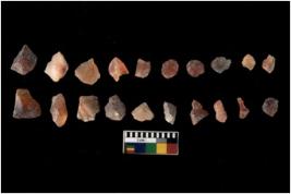 | Description / विवरण | Specimen of flakes Chips with prominent flaking marks. It made up of a short flakes with sides trimmed. |