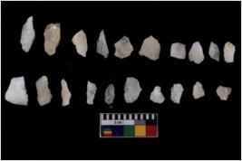 | Description / विवरण | There are n 20 flakes tool; there are multidirectional irregular scar pattern on them, made of short flakes and few have tapering edges. |