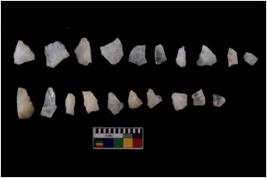 | Description / विवरण | There are n 20 flakes tool; there are multidirectional irregular scar pattern on them, made of short flakes and few have tapering edges. |