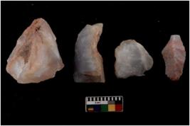 | Description / विवरण | There are n 4 flakes tool; there are multidirectional irregular scar pattern on them; made of short flakes and all four have tapering edges. |