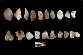 | Description / विवरण | There are n 20 flakes; they are with marginal retouch . The flakes have a flat dorsal surface, and double rigdes going parallel to its length. |