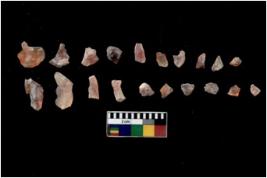 | Description / विवरण | Specimen of flakes chips with prominent flaking marks. It made up of a short flakes with sides trimmed. |