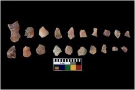 | Description / विवरण | Specimen of flakes chips with prominent flaking marks. It made up of a short flakes with sides trimmed. |