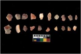 | Description / विवरण | Specimen of flakes Chips with prominent flaking marks. It made up of a short flakes with sides trimmed. |