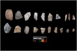 | Description / विवरण | There are n 20 flakes tool; there are multidirectional irregular scar pattern on them; made of short flakes and all four have tapering edges. |