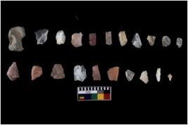 | Description / विवरण | There are n 21 flakes tool; there are multidirectional irregular scar pattern on them, made of short flakes and few have tapering edges. |