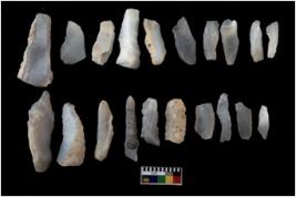 | Description / विवरण | There are n 20 flakes tool; there are multidirectional irregular scar pattern on them; made of short flakes and all have tapering edges. |
