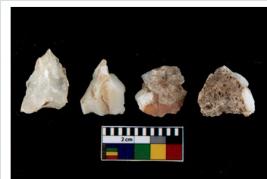 | Description / विवरण | There are n 4 flake cores. All of them are fully fluted flake cores without any trace of crested ridge flakes. Some of them have tapering edges whereas few have broken tip. |
