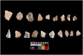 | Description / विवरण | There are n 20 flakes tool; there are multidirectional irregular scar pattern on them, made of short flakes and few have tapering edges. |