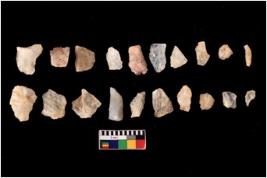 | Description / विवरण | There are n 20 flakes tool; there are multidirectional irregular scar pattern on them, made of short flakes and few have tapering edges. |