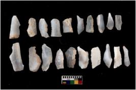 | Description / विवरण | There are n 20 flakes tool; there are multidirectional irregular scar pattern on them; made of short flakes and all have tapering edges. |