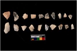 | Description / विवरण | There are n 20 flakes tool; there are multidirectional irregular scar pattern on them, made of short flakes and few have tapering edges. |