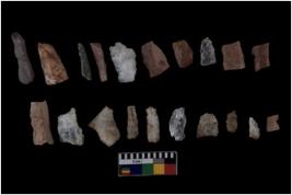 | Description / विवरण | There are n 20 flakes tool; there are multidirectional irregular scar pattern on them; made of short flakes and few have tapering edges. |