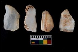 | Description / विवरण | There are n 4 flake cores. All of them are fully fluted flake cores without any trace of crested ridge flakes. They are blunted edges whereas few have tapering edges. |