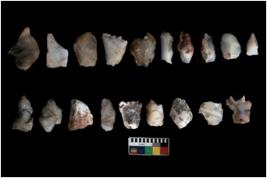 | Description / विवरण | There are n 20 flakes; they are with marginal retouch . The flakes have a flat dorsal surface, and double rigdes going parallel to its length. |