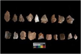 | Description / विवरण | There are n 20 flakes; they are with marginal retouch . The flakes have a flat dorsal surface, and double rigdes going parallel to its length. |