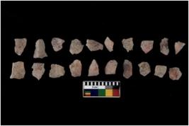 | Description / विवरण | Specimen of flakes Chips with prominent flaking marks. It made up of a short flakes with sides trimmed. |