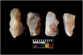 | Description / विवरण | There are n 4 flake cores. All of them are fully fluted flake cores without any trace of crested ridge flakes. Some of them have sharp edges whereas few have tapering edges. |