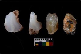 | Description / विवरण | There are n 4 flake cores. All of them are fully fluted flake cores without any trace of crested ridge flakes. Some of them have blunted edges whereas few have broken tip. |