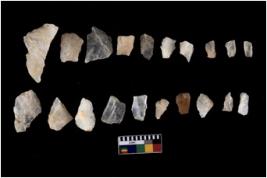 | Description / विवरण | There are n 20 flakes tool; there are multidirectional irregular scar pattern on them, made of short flakes and few have tapering edges. |