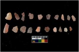 | Description / विवरण | Specimen of flakes Chips with prominent flaking marks. It made up of a short flakes with sides trimmed. |