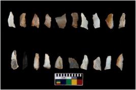 | Description / विवरण | There are n 20 flakes; they are with marginal retouch . The flakes have a flat dorsal surface, and double rigdes going parallel to its length. |