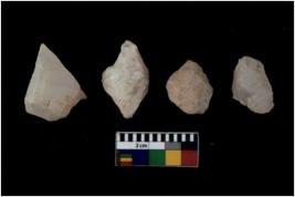 | Description / विवरण | There are n 4 flakes tool; there are multidirectional irregular scar pattern on them; made of short flakes and all four have tapering edges. |