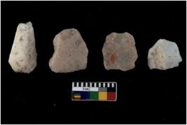 | Description / विवरण | There are n 4 flakes tool; there are multidirectional irregular scar pattern on them; made of short flakes and all four have tapering edges. |