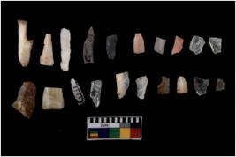 | Description / विवरण | There are n 20 flakes tool; there are multidirectional irregular scar pattern on them; made of short flakes and few have tapering edges. |