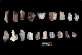 | Description / विवरण | There are n 20 flakes; they are with marginal retouch . The flakes have a flat dorsal surface, and double rigdes going parallel to its length. |