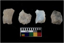 | Description / विवरण | There are n 4 flakes tool; there are multidirectional irregular scar pattern on them; made of short flakes and all four have tapering edges. |