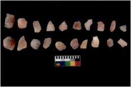 | Description / विवरण | Specimen of flakes Chips with prominent flaking marks. It made up of a short flakes with sides trimmed. |