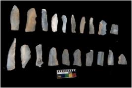| Description / विवरण | There are n 20 Flake tool; There are multidirectional irregular scar pattern on them. few have blunt edges, Some of them are tapering at one end. |
