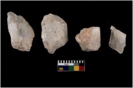 | Description / विवरण | There are n 4 flakes tool; there are large flakes with sides trimmed, Marks of secondary flaking are present on the both the faces. The dorsal is relatively flat. |