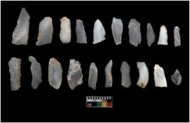 | Description / विवरण | There are n 20 Flake tool; There are multidirectional irregular scar pattern on them. few have blunt edges, Some of them are tapering at one end. |
