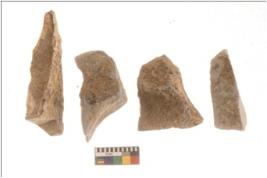 | Description / विवरण | There are n 4 flakes tool; there are large flakes with sides trimmed, Marks of secondary flaking are present on the both the faces. One is pointed functional top. |