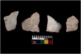 | Description / विवरण | There are n 4 flakes tool; there are multidirectional irregular scar pattern on them; made of short flakes and all four have tapering edges. |
