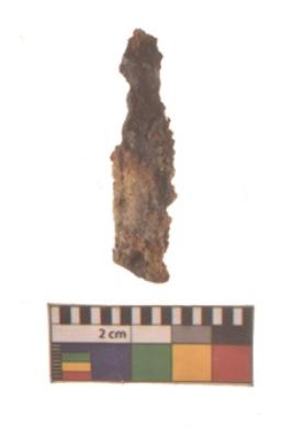 | Description / विवरण | A long Iron nail with pointed functional bottom end and round slightly projected top with loop shaped. It is broken Piece with highly corroded in present condition. |