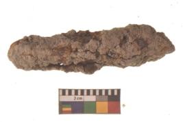| Description / विवरण | A fragment of Iron Rod. A long iron balancing rod with slightly bulged ends broken circular in cross section. It is highly rusted in present condition. |