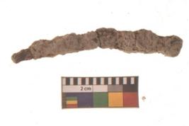 | Description / विवरण | A long Iron nail with pointed functional bottom end and round slightly projected top with loop shaped. It is broken Piece with highly corroded in present condition. |