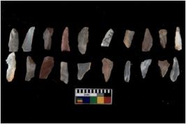 | Description / विवरण | Specimen of flakes tool with prominent flaking marks. It made up of a short flakes with sides trimmed. |
