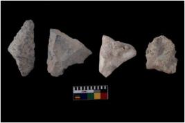 | Description / विवरण | There are n 4 flakes tool; there are multidirectional irregular scar pattern on them; made of short flakes and all four have tapering edges. |