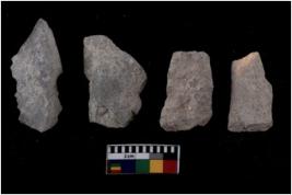| Description / विवरण | There are n 4 flakes tool; there are flakes tool with prominent flaking marks. It made up of a large flakes with sides trimmed. It is rectangular in shaped. |