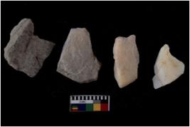 | Description / विवरण | There are n 4 flakes tool; there are large flakes with sides trimmed, Marks of secondary flaking are present on the both the faces.The dorsal is relatively flat. |