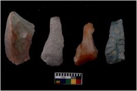 | Description / विवरण | There are n 4 flakes tool; there are large flakes with sides trimmed, Marks of secondary flaking are present on the both the faces. The dorsal is relatively flat. |