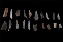 | Description / विवरण | Specimen of flakes tool with prominent flaking marks. It made up of a short flakes with sides trimmed. |