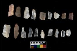 | Description / विवरण | There are n 19 Flake tool; There are multidirectional irregular scar pattern on them. Some of them are tapering at one end, few have pointed functional top. |
