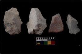 | Description / विवरण | There are n 4 flakes tool; there are multidirectional irregular scar pattern on them; made of short flakes and all four have tapering edges. |